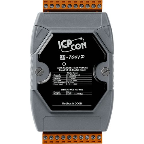The M-7041D/M-7041PD includes 14 LED indicators for channel status monitoring. The M-7041(D)/M-7041P(D) supports Modbus RTU and DCON protocols, which can be configured via software.