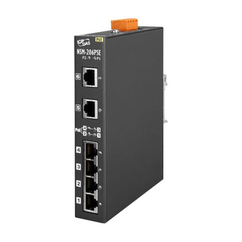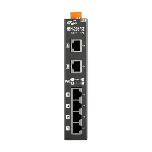 The NSM-206PSE is 6-port unmanaged Ethernet switch supporting Power-over-Ethernet on ports 1 to 4. The switch is classified as power source equipment (PSE), and when used in this way, the NSM-206PSE enable centralization of the power supply, providing up to 30 watts. The NSM-206PSE can be used to power IEEE 802.3af/at standard devices (PD).