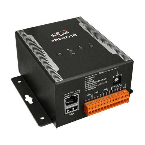 PMC-5231M is the new generation of Power Meter Concentrator for meeting the trend of energy saving and carbon reduction in the Industry 4.0 age. It provides flexible integration with the ICP DAS power meters via RS-485 or Ethernet interface, and features various functions such as: measure the power consumption of the devices, energy usage analysis, power demand management and alarm notification functions. The PMC-5231M features a built-in Micro SD card. After it retrieving the power data from the power meter, it will save the power data in data log file, and automatically send back the data log files to the back-end management center for data analysis and statistics. PMC-5231M offers a user-friendly and intuitive web site interface that allows users to implement the Energy monitoring and management system just a few clicks away; no programming is required. In addition to ICP DAS XV-Board and M-7000 I/O modules, the PMC-5231M can also connect to standard Modbus TCP/RTU Slave modules. By working with the I/O modules, and functions such as IF-THEN-ELSE logic rule execution and alarm notification functions including LINE/Email, PMC-5231M offers more thought-out power demand management and alarm notification functions, and is able to perform load shedding of the devices if required, and enables real-time monitoring and control of the power consumption of the devices. PMC-5231M also supports the Modbus TCP/RTU, SNMP, FTP and MQTT protocols for seamless integration with the back-end SCADA/MES/IT/IoT/Network Management systems. So that the administrator can monitor the status of power consumption of each device and perform statistics and analysis of the power information, thus improving the overall efficiency in electricity consumption to save costs on utility bills. All of these features make PMC-5231M a perfect concentrator of power meter in the Energy monitoring and management application of Industry 4.0 age.