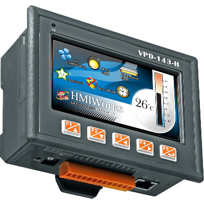 VPD industrial touch HMI device series features, 4.3" high resolution color touch screen LCD. With touchscreen capability, it is easy to deploy into all kinds of automation systems, and make them more intuitive and efficient. Either setup new system installations or complete system retrofits, VPD series stands out for its wide variety of communication methods. Its built-in communication ports include RS-232/RS-485, and Ethernet, USB interface, enable integration into the system allowing users to control, monitor I/O at the remote sides and update firmware directly from the central computer. Besides, the built-in non-volatile storage makes VPD series more reliable for rugged environments.